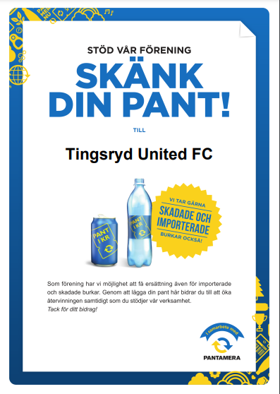 Ni har inte missat att vi är med och fightas för både en bättre miljö men också för att ha chans att vinna pantkampen.?! Vi är långt ifrån mål men Med hjälp av vår fantastiska Monica som arbetar mest med panten ligger vi just nu på en fin 4.e plats. Så hjälp oss att hänga med mot toppen och panta dina burkar hos oss.! Vi tar emot både utländska och skadade burkar/flaskor så var inte rädda att lämna in dom i våra pantbehållare. Våra insamlingsplatser är Bollhallen, Tinghallens parkering, Ebbalycke, Mårdslycke och Elsemåla återvinningsstation. Vi har sett att många kastar sina burkar i containern bredvid vår insamling på tippen, ge dom till oss istället, vi tar som sagt utländska burkar också. TACK.