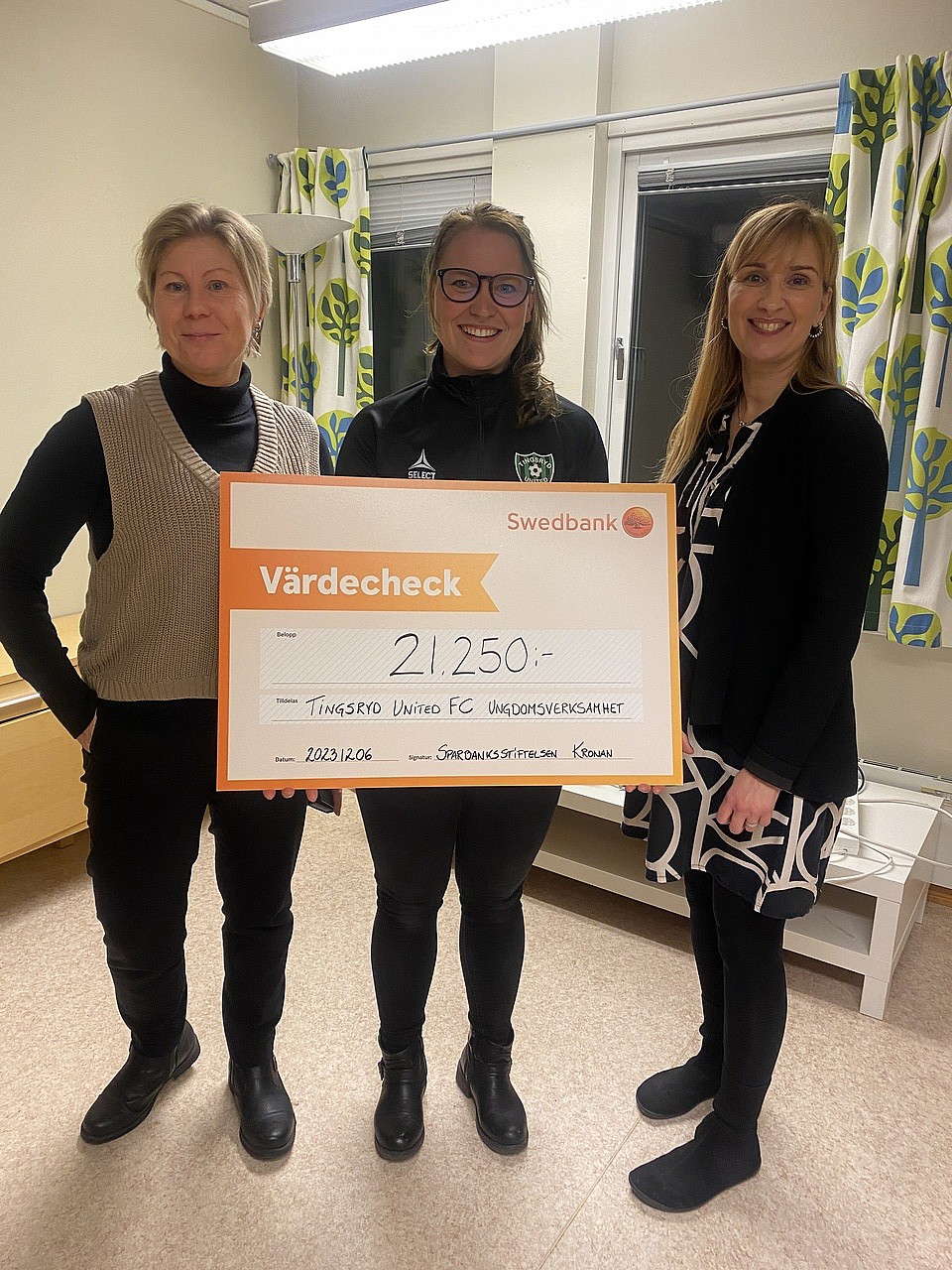 Igår tog Sara emot en check från Swedbank Sverige och Sparbanken Kronans Stiftelse i TingsrydsTravets lokaler. 🙏🏼Detta efter att vår ungdomssektion har sökt stöd för inköp av nya 5mannamål. Vi är så glada att vi får ta del av denna potten och tackar ödmjukast för denna fina summan!