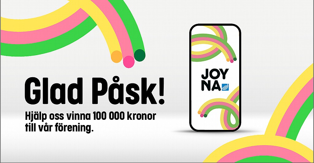Folkspels nya prenumerationslotteri JOYNA har en stor påskkampanj och vår förening har chansen att vinna 100 000 kronor om vi registrerar minst 100 medlemmar senast den 7:e april.