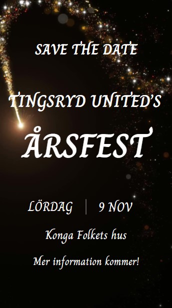 den 9/11 går Tingsryd Uniteds Årsfest av stapeln igen! Save the date så kommer mer information inom kort!