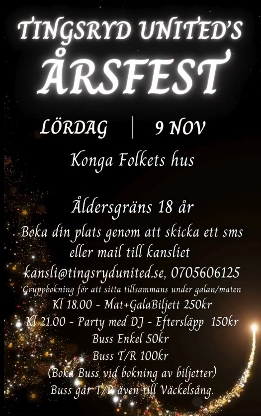 den 9 Nov kör vi avslutning för året med party i Konga Folkets hus.